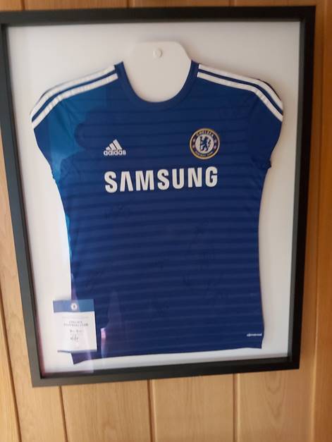 Myndin er í veglegum ramma og glerjuð, þá fylgir vottorð frá Chelsea Football Club, áritað af Bruce Buck, þess efnis að um „Official signed product“ sé að ræða